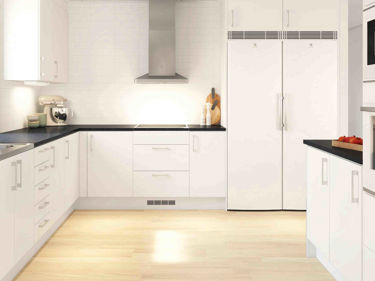 Valitse kiltävät ja täysin valkoiset keittiökaappien ovet, saat keittiöllesi raikaan ja modernin ilmeen.