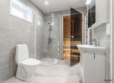 Kaakelikuvioidut kosteantilan levyt ovat kylpyhuoneissa vakiona, ja ne voi valita myös pieneen WC:hen. Valitse viidestä eri mallista.