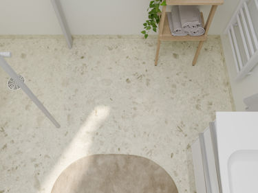 Älvsbytaloissa on vakiona Tarkettin lattiapäällyste kodinhoitohuoneen, wc:n, kylpyhuoneen ja saunan lattiamateriaalina. Aquarelle-malliston lattia on vesitiivis ja turvallinen materiaali kosteisiin tiloihin. Tarkettin lattiapäällysteet ovat kestäviä ja helppohoitoisia.