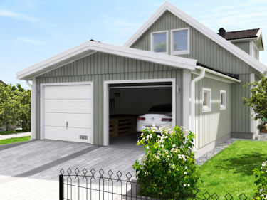 Praktiskt vidbyggt garage/förråd. Kan kombineras med 27°, 34° och 38° husmodeller. Fråga mera av din egen försäljare.