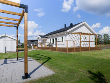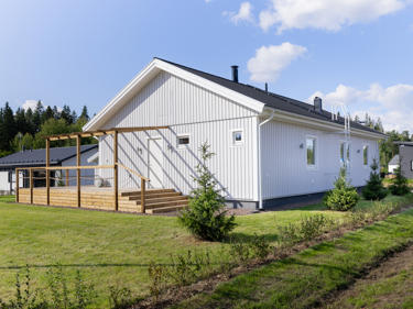 Det inflyttningsklara Minnas linjer är nordiskt raka både inomhus och utomhus. Minna smälter bra in både i stadsmiljö och i landsbygdens lugn. Som ett hem eller till fritiden.