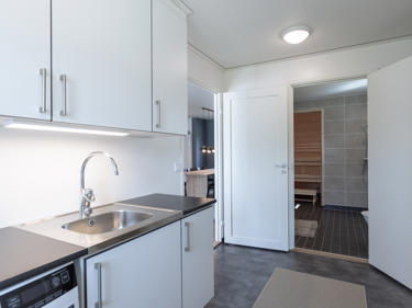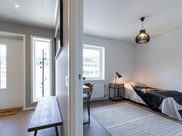 Husmodell Minna: 2 sovrum + kök/vardagsrum + bastu