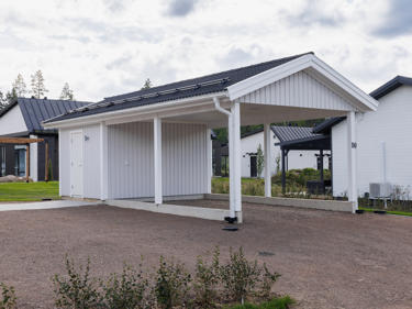 Garage/biltak: På tomten finns ett separat biltak med förråd, E25