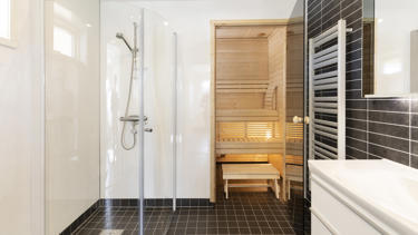 Husmodell Sofia: 3 sovrum + kök/vardagsrum + 3 klädrum + bastu med gavelaltan