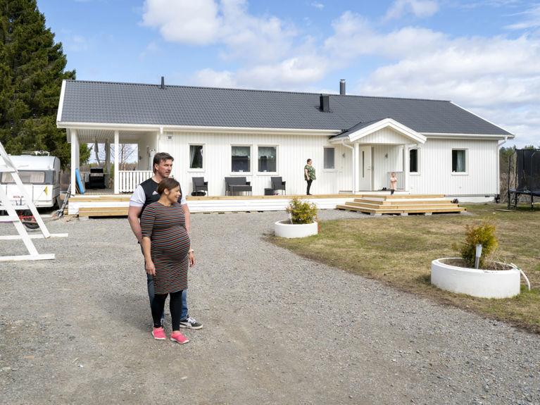 Paret Heikkilä flyttade in i sitt nya småhus i centrum av Kolari. –Till en början hade vi svårt att tro att den låga energiförbrukningen var sann, säger Pasi. Mikael är väldigt energieffektivt.