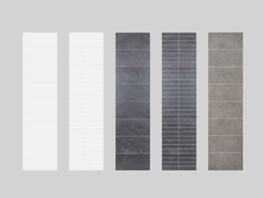 Kakelmönstrade våtrumsskivor är standard i badrummet och går även att välja som tillval i lilla WC. Välj mellan fem olika utföranden.