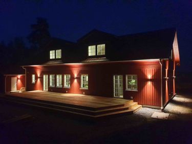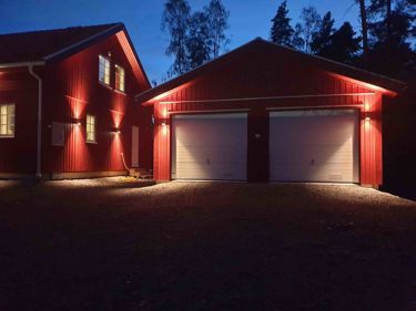 Skapa en stämningsfull exeteriör med extra fasadbelysning. Som standard ingår 2 armaturer, men du väljer själv hur många du vill ha till ditt hus.