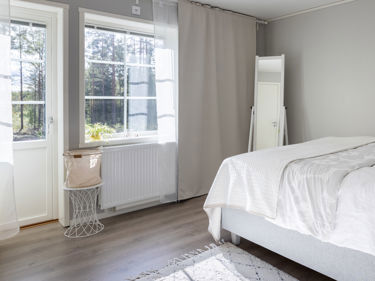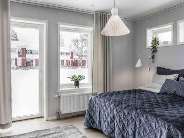 Gå ut direkt från sovrummet till trädgården eller uteplatsen. Fönsterdörr släpper in det naturliga ljuset och får rummet att kännas större. Välj helglasad för ytterligare ljusinsläpp.