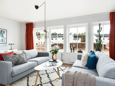 Större fönster kan väljas i vardagsrum och i kök. Släpper in det naturliga ljuset och är ett snyggt tillval både exteriört och interiört.