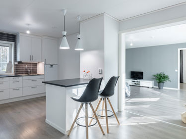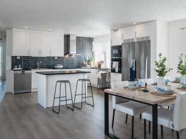 Praktisk förvaring och arbetsyta. Köksön levereras löst med huset och har ingen fast placering. Efter vår slutbesiktning kan ni själv möblera upp köket innan ni placerar ut köksön där ni önskar.