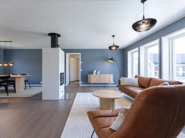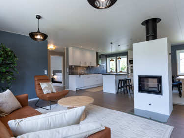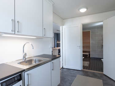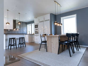 Då du stiger in i Minnas tambur förstår du vad skandinavisk design och finländsk gästvänlighet innebär. I mitten av huset öppnar en rymlig och ljus kombination av kök och vardagsrum upp sig som bjuder in till trivsel.