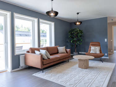 Det inflyttningsklara huset Minnas utrymmen kan enkelt förvandlas till ett hem med två eller tre sovrum i enlighet med dina önskemål. Vardagsrummet kan vid behov delas in i ett separat rum – och överraskande nog bevaras rymligheten.