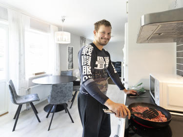 Saara är ett bedårande huspaket där man genom skicklig planering har lyckats skapa känslan av ett stort hus. Det rymliga och ljusa enhetliga köket och vardagsrummet på 36,6 m² bjuder in till matlagning och umgänge tillsammans.