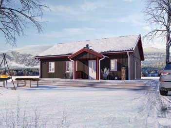 Lasse i 1,5-plan skryter inte med storleken utan med effektiviteten. I nedre våningen finns alla nödvändiga funktioner och i den förberedda övre våningen får man enkelt fler rum, antingen genast eller senare.