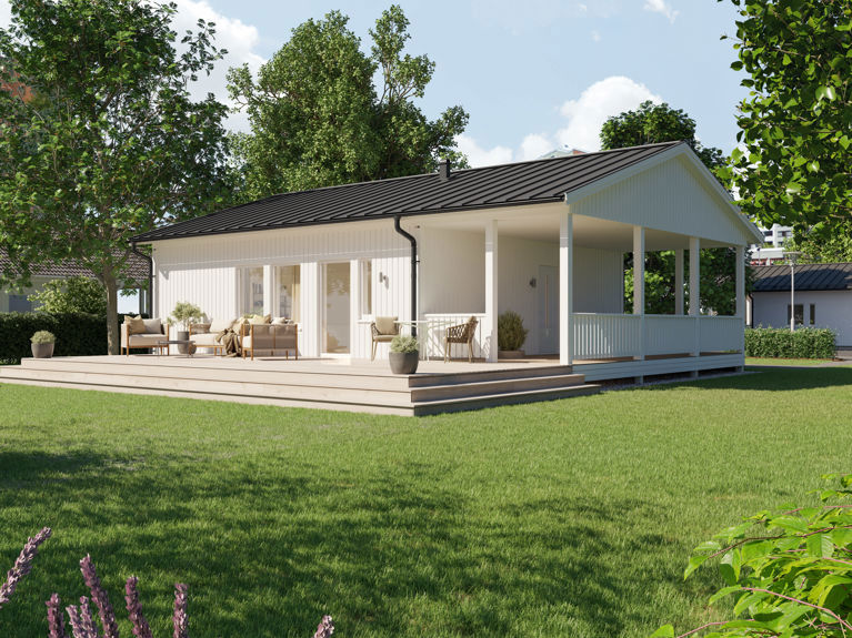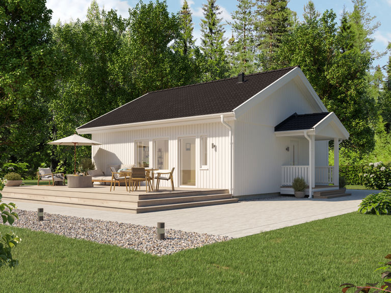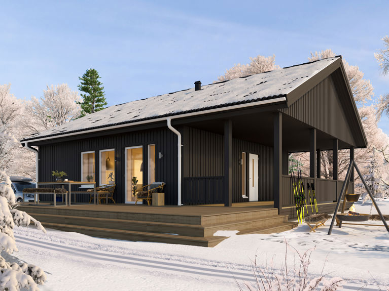 Det minsta fritidshuspaketet Siiri har effektiva och öppna utrymmen. Småhuset sparar kvadrater, energi och tomtmark utan att pruta på bekvämligheten.