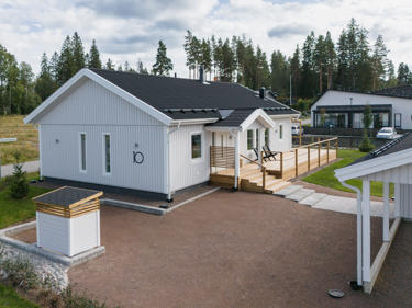 Det inflyttningsklara Minnas linjer är nordiskt raka både inomhus och utomhus. Minna smälter bra in både i stadsmiljö och i landsbygdens lugn. Som hem eller till fritiden.