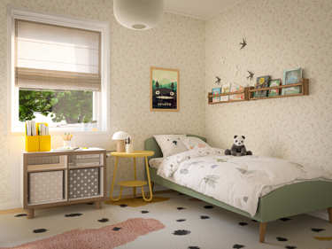 Lasten makuuhuoneet sijaitsevat omassa rauhallisessa osassaan taloa – täydellinen ratkaisu, kun muu koti on vielä täydessä vauhdissa. Tilavassa kodinhoitohuoneessa on käytännöllinen kuraeteinen – arvostettu yksityiskohta lapsiperheissä. Tähän pysähtyvät hiekka, lumi ja märät vaatteet ennen kuin ne leviävät muualle kotiin.